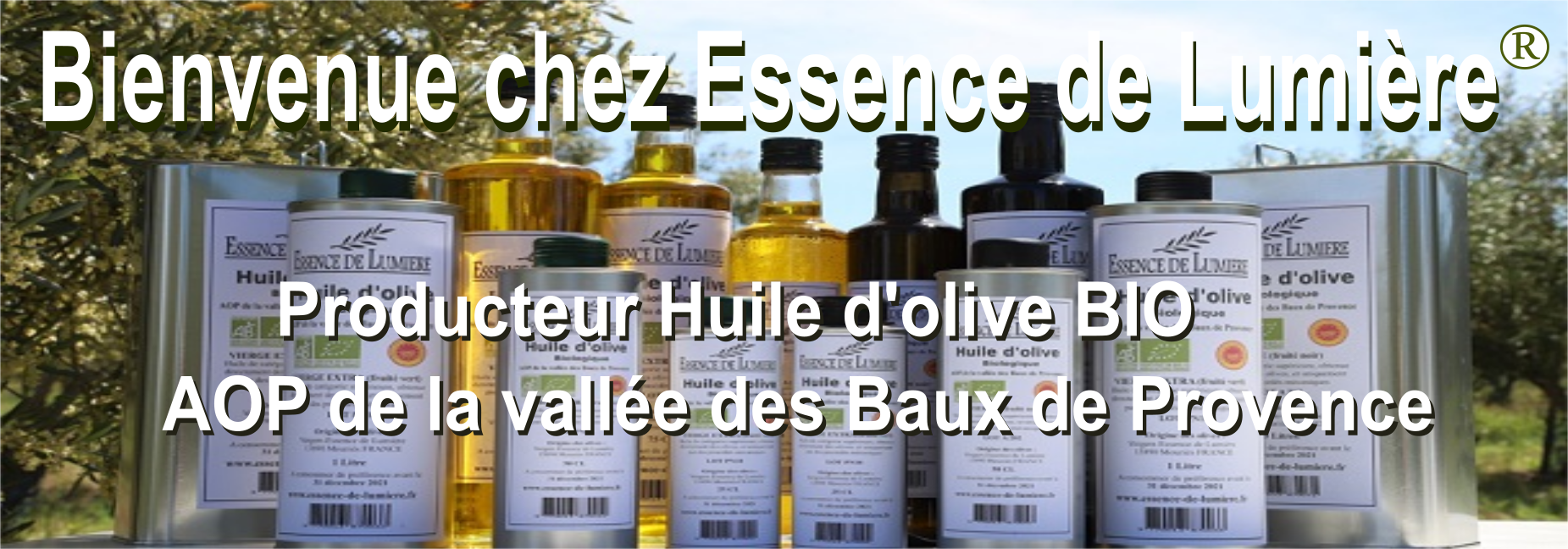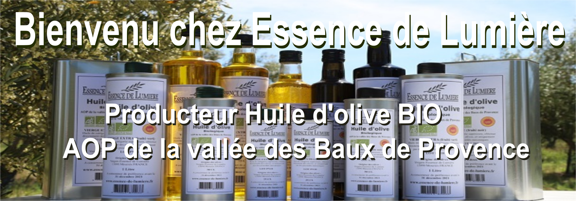 À cette belle occasion, nous offrons à nos chers consommateurs et amis le meilleur de notre récolte : une huile d'olive biologique de haute qualité, une « Essence » rare issue des plus belles olives mûries sous le soleil radieux de la vallée des Baux-de-Provence.